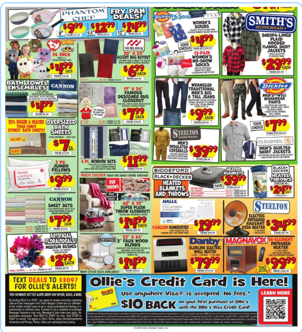 Flyer deals and prices may vary by location, so be sure to check your local Ollie’s weekly ad online or in-store. You can also use the store locator to see if specific items or events are available at your store.